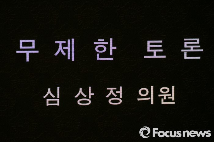 (서울=포커스뉴스) 심상정 정의당 대표가 2일 오전 서울 여의도 국회 본회의장에서 테러방지법 저지를 위한 무제한 토론(필리버스터)을 하고 있다.