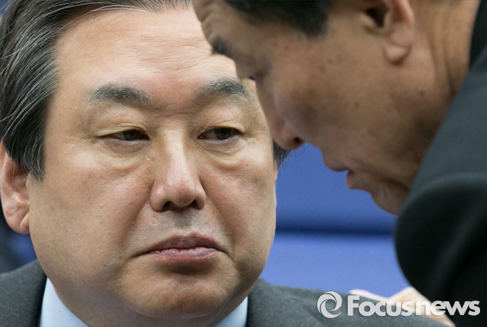 (서울=포커스뉴스) 김무성(왼쪽) 새누리당 대표와 황진하 사무총장이 2일 오전 서울 여의도 국회에서 열린 의원총회에 참석해 논의하고 있다.