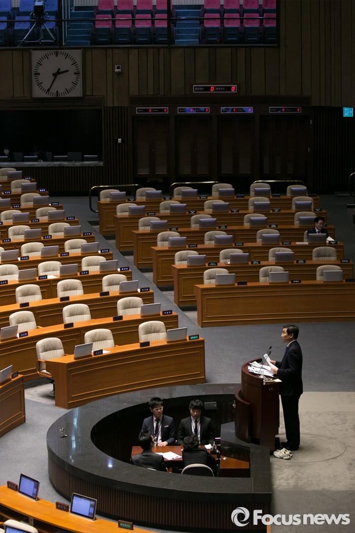 (서울=포커스뉴스) 테러방지법 직권상정에 반발해 야당이 세계 최장 기록의 필리버스터(무제한 토론)를 이어가고 있는 2일 오후 서울 여의도 국회 본회의장에서 토론에 참여한 이종걸 더불어민주당 원내대표가 발언하고 있다. 야당은 이날 필리버스터를 중단하고 선거법 등을 처리할 예정이다.