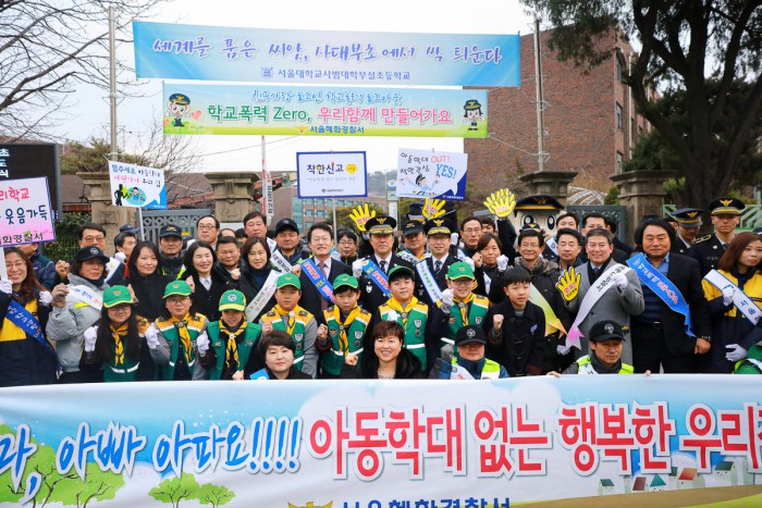 한편 이상원 서울경찰청장, 조희연 서울시교육감 등은 교사, 학부모 등과 함께 2일 서울사대부설초등학교 앞에서 ‘아동학대·학교폭력 예방 붐 조성을 위한 등교 맞이 캠페인’을 진행했다.이상원 서울경찰청장, 조희연 서울시교육감 등은 2일 서울사대부설초등학교에서 신학기를 맞아 학교·학부모·지역사회와 협업으로 아동학대·학교폭력 예방활동의 확산을 위한 캠페인을 전개했다. <사진제공=서울지방경찰청>