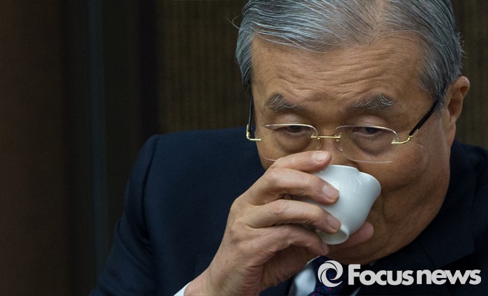 (서울=포커스뉴스) 2일 오후 서울 종로구 조계사를 찾은 김종인(오른쪽) 더불어민주당 비상대책위원회 대표가 차를 마시고 있다.