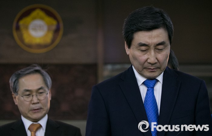 (서울=포커스뉴스) 테러방지법 직권상정에 반발해 야당이 세계 최장 기록의 필리버스터(무제한 토론)를 진행한 2일 오후 서울 여의도 국회에서 마지막 주자로 나섰던 이종걸(오른쪽) 더불어민주당 원내대표가 취재진 질문에 답하고 있다. 마지막 주자로 나선 이 원내대표는 이날 정청래 의원의 기록인 11시간 40분을 경신한 12시간 31분을 기록하며 토론을 마쳤으며, 야당의 필리버스터는 약 193시간만에 종료됐다.