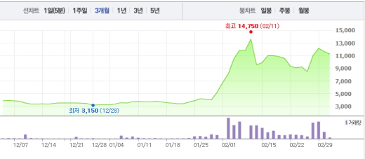 콘돔 제조회사 유니더스는 이날 오전 9시35분 현재 전일 대비 3.43%(400원) 떨어진 1만1250원에 거래 중이다. 유니더스는 2월 26일 거래제한폭인 30%나 상승하는 등 꾸준히 상승했지만 흐름이 바뀌었다.