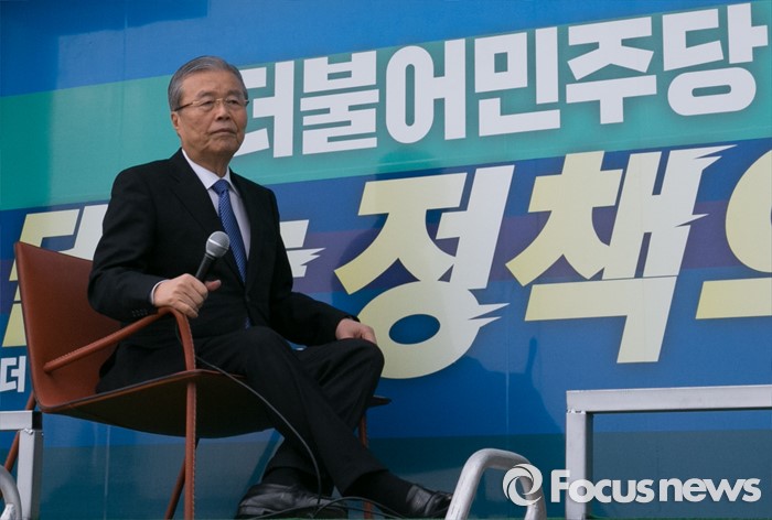 (서울=포커스뉴스) 김종인 더불어민주당 비대위 대표가 3일 오전 서울 여의도 국회 앞에서 열린 달리는 정책의자 발대식에 참석해 홍보영상을 촬영하고 있다.