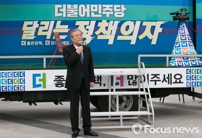 (서울=포커스뉴스) 김종인 더불어민주당 비대위 대표가 3일 오전 서울 여의도 국회 앞에서 열린 달리는 정책의자 발대식에 참석해 인사말을 하고 있다.
