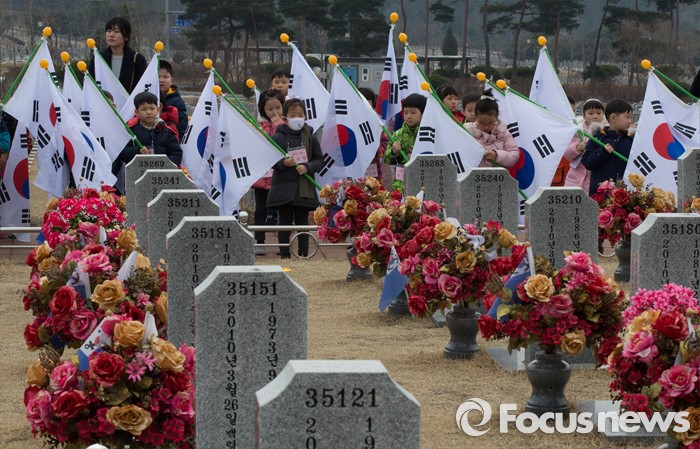 (대전=포커스뉴스) 3일 오전 입학 후 첫 수업에 들어간 대전 화정초등학교 1학년 신입생들이 대전 유성구 국립대전현충원 천안함 46용사 묘역을 찾아 참배하고 있다.
