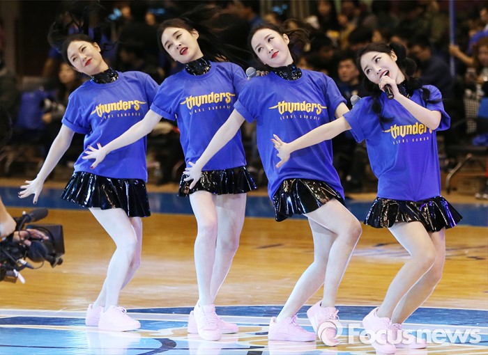 (서울=포커스뉴스) 2일 서울 잠실실내체육관에서 열린 2015-2016 프로농구 삼성-KGC 6강플레이오프 4차전 하프타임매 인기 걸그룹 식스밤이 흥겨운 춤과 노래를 관중에게 선사하고 있다.