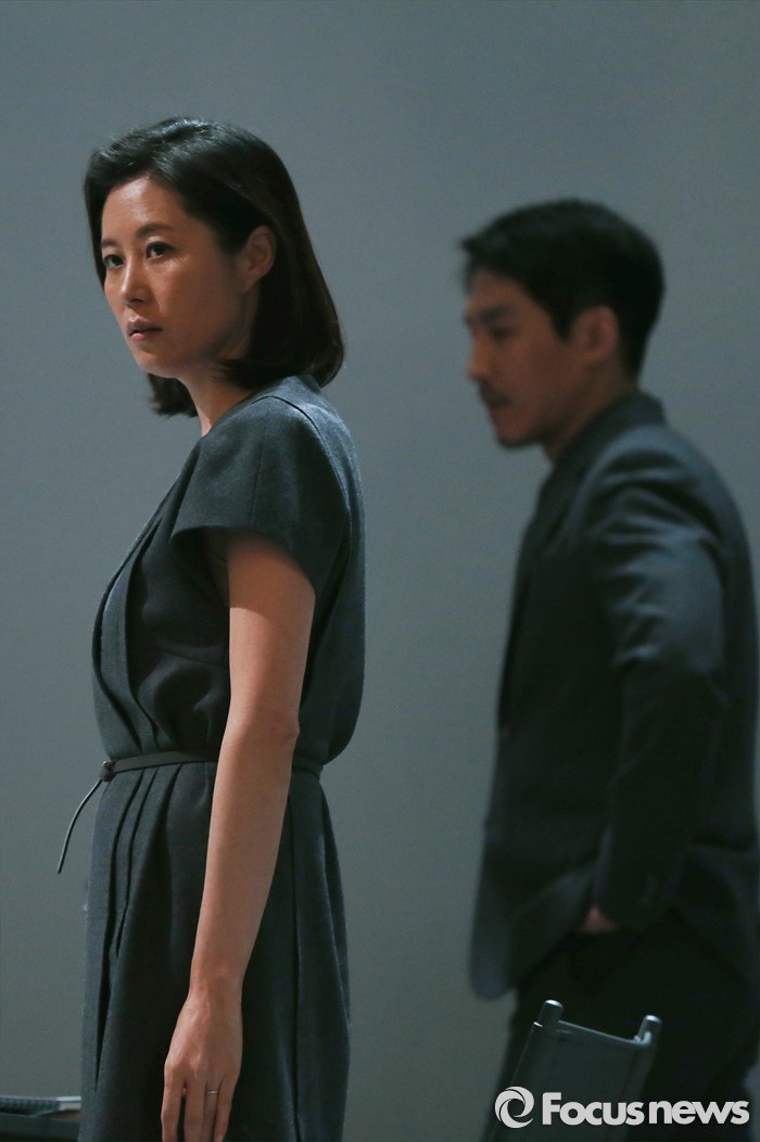 (서울=포커스뉴스) 3일 오후 서울 중구 명동예술극장에서 열린 연극 '빛의 제국' 프레스콜 행사에 참석한 배우 문소리(왼쪽)가 주요장면을 시연하고 있다.