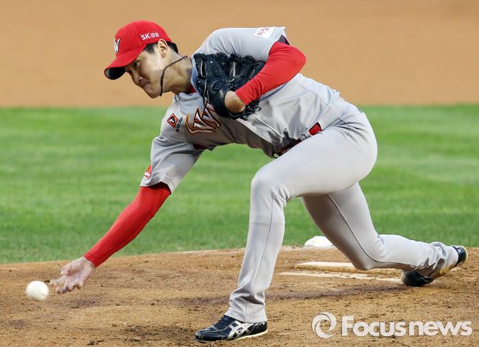 박종훈은 지난 시즌 33경기 6승8패 평균자책점 5.19를 기록했다. 선발 경험을 쌓으며 성장했다. 올시즌 박종훈이 두자릿수 승리 도전에 성공하면 SK 선발진은 어느 구단 부럽지 않다. 김 감독은 "시범경기 체력관리, 컨디션 관리 등을 잘해야 한다. 끝까지 경쟁과 긴장의 끈을 놓지 않기를 바란다"고 전했다.(서울=포커스뉴스) 1일 잠실구장에서 열린 2015 프로야구 SK-두산전, SK 선발투수 박종훈이 바닥을 긁듯이 낮은 위치에서 공을 던지고 있다. 2015.09.01 우정식 기자