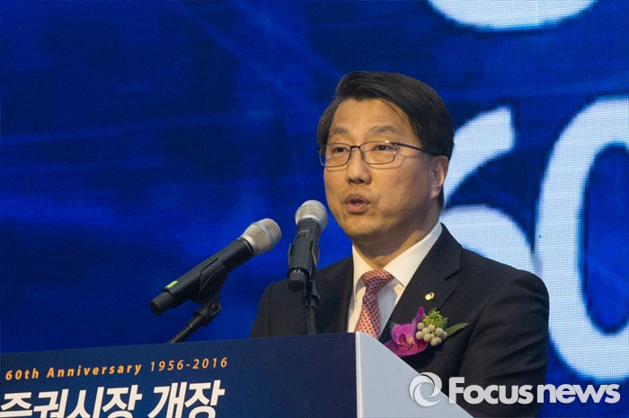 (서울=포커스뉴스) 진웅섭 금융감독원 원장이 3일 오후 서울 영등포구 63빌딩에서 열린 증권시장 개장 60주년 기념식에서 축사를 하고 있다. 이번 행사는 지난 1956년 3월 3일 대한증권거래소의 출범과 함께 문을 연 한국 증시의 60년 발자취를 기념하기 위해 마련됐다.
