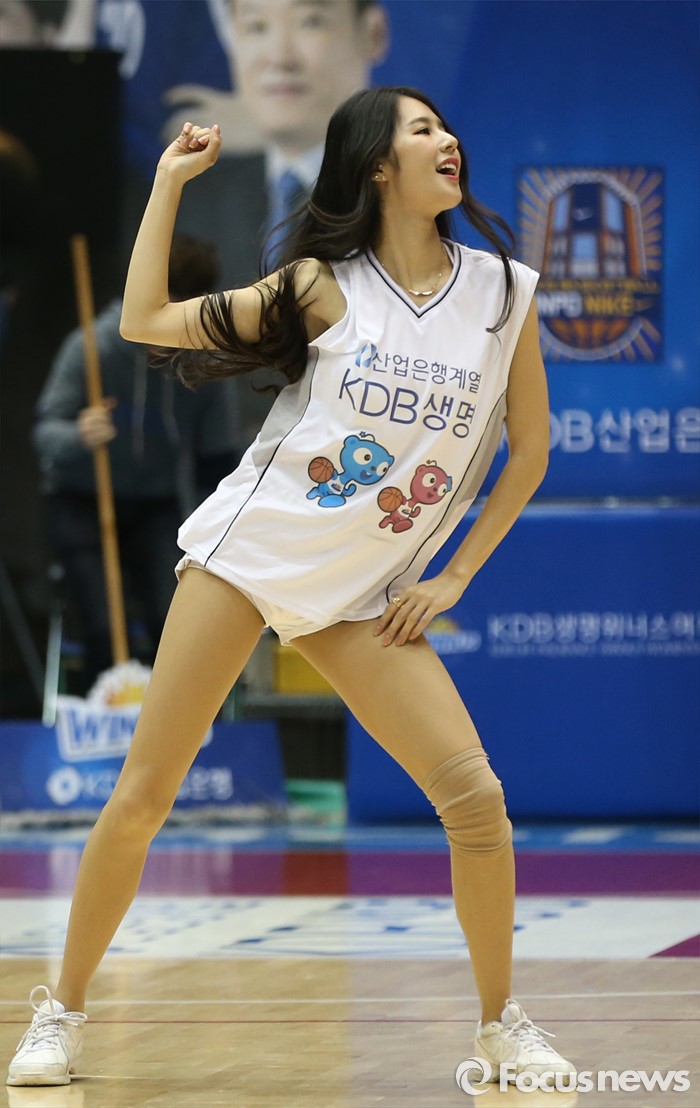 (구리=포커스뉴스) 3일 구리시체육관에서 열린 2015~2016 여자프로농구 KDB생명- KEB하나 경기에서 KDB생명 치어리더 박기량이 흥겨운 춤으로 경기장의 열기를 고조시키고 있다.