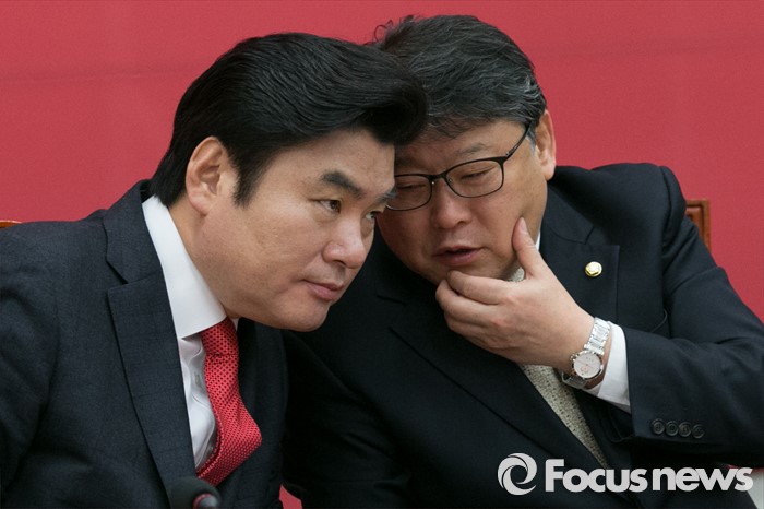 | △ 원유철·조원진 '귀엣말' |