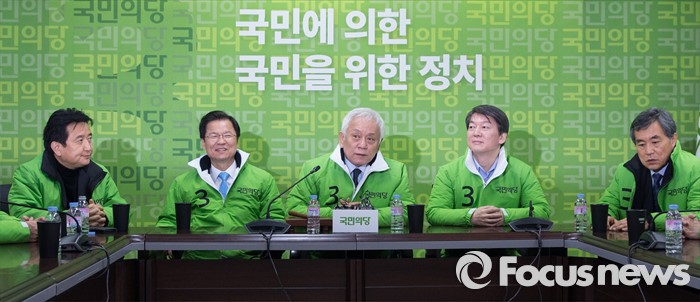 (서울=포커스뉴스) 국민의당 안철수, 천정배 상임공동대표와 김한길 선거대책위원장이 4일 오전 서울 마포구 국민의당 당사에서 열린 4차 선거대책 회의에 참석하고 있다.왼쪽부터 김영환 의원, 천 대표, 김한길 선대위원장, 안 대표