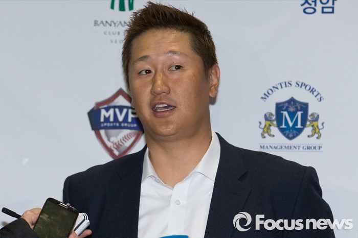 이대호는 시애틀과 스프링캠프 초청권이 포함된 스플릿계약을 맺었다. 개막 25인 로스터에 포함되면 메이저리그 계약(1년 최대 400만달러)이 성사되나 제외되면 마이너리그 계약조건을 받아들여야 한다. 다만 이대호가 마이너리그 계약을 받아들이지 않으면 프리에이전트(FA) 선수가 되는 옵트아웃 조항이 포함돼 있는 것으로 알려졌다.(인천공항=포커스뉴스) 미국프로야구 시애틀 매리너스와 마이너리그 계약한 이대호가 5일 오전 인천국제공항을 통해 귀국한 뒤 취재진의 질문에 답하고 있다. 2016.02.05 오장환 기자