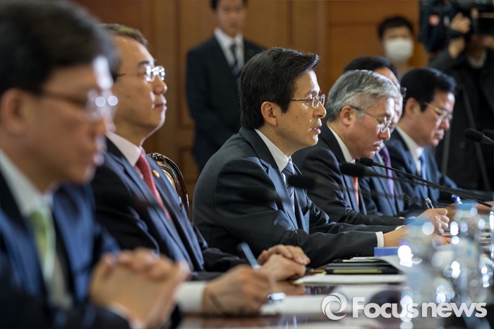 (서울=포커스뉴스) 황교안(가운데) 국무총리가 4일 오전 서울 종로구 정부서울청사에서 열린 '공명선거관계장관회의'에 참석 모두발언 하고 있다.