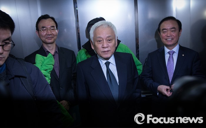 (서울=포커스뉴스) 선거대책 회의를 마친 김한길 국민의당 선대위원장이 4일 오전 서울 마포구 국민의당 당사에서 기자들의 질문을 받으며 당사를 빠져나고오 있다.