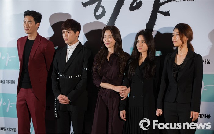 (서울=포커스뉴스)영화 '히야' 출연진 및 감독이 4일 오후 서울 성동구 왕십리 CGV 에서 열린 영화 '히야' 언론시사회에 참석, 취재진을 향해 포즈를 취하고 있다. (왼쪽부터 배우 안보현, 그룹 인피니트 멤버 호야, 배우 강성미, 배우 강민아, 감독 김지연)
