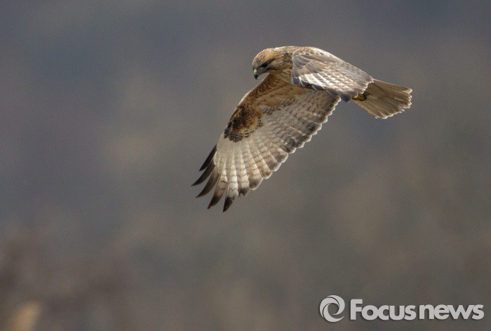 (철원=포커스뉴스)북상길에 오른 멸종위기종 말똥가리가 6일 오전 강원 철원군 한탄강에서 먹잇감을 찾고 있다.