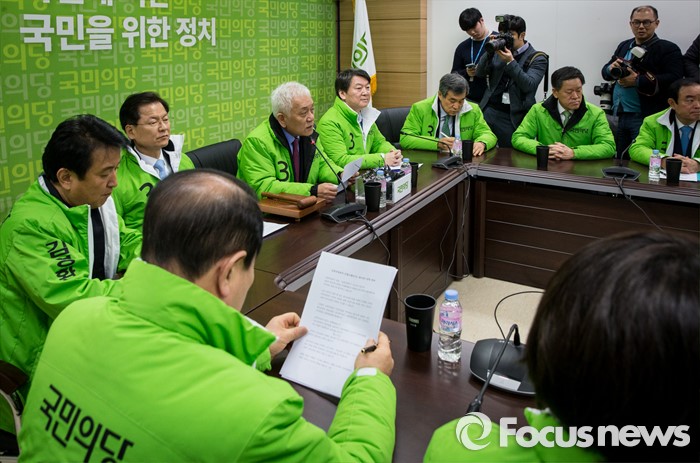 (서울=포커스뉴스) 7일 오전 서울 마포구 당사에서 열린 선거대책위원회의에 참석한 김한길 국민의당 상임 선대위원장이 모두발언을 하고 있다.