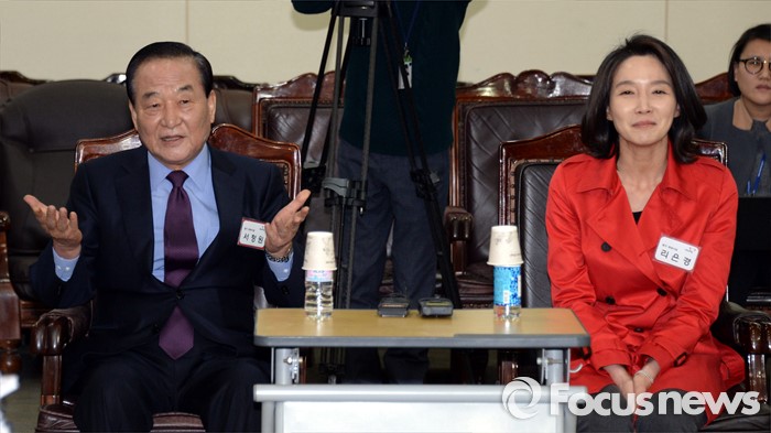 (서울=포커스뉴스) 최다선인 새누리당 서청원 최고위원이 7일 오후 서울 여의도 당사에서 열린 20대 총선 선거구 획정과정에 분구·통합된 경기·충청·강원지역의 공천신청자면접에 참석해 이한구 공천관리위원장의 질문에 답하고 있다. 오른쪽은 같은 지역구에 출마한 리은경 예비후보.