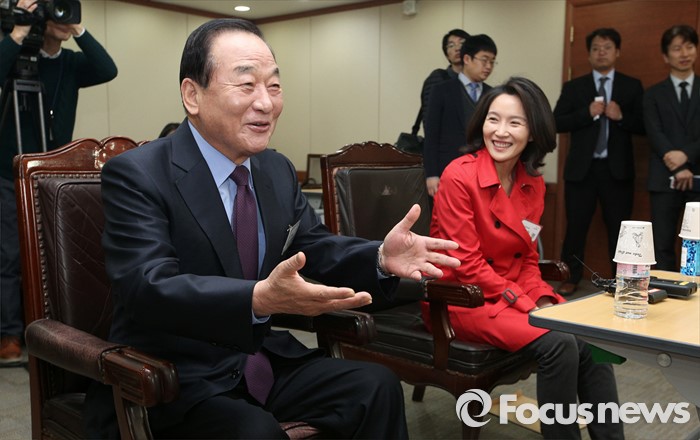 (서울=포커스뉴스) 서청원 새누리당 최고위원(경기 화성갑)이 7일 오후 서울 여의도 당사에서 열린 공천 면접에서 경쟁자인 리은경 예비후보와 함께 면접을 보고 있다.