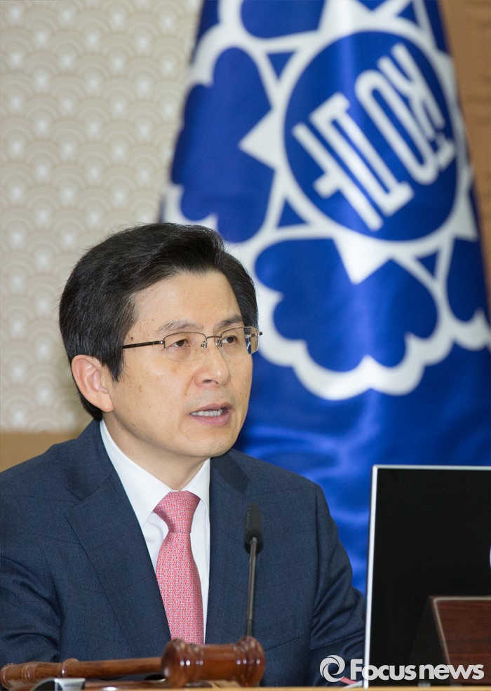 (세종=포커스뉴스) 황교안 국무총리가 8일 오전 세종시 정부세종청사 국무회의장에서 서울-세종 영상회의로 열린 국무회의에 참석해 회의를 주재하고 있다.