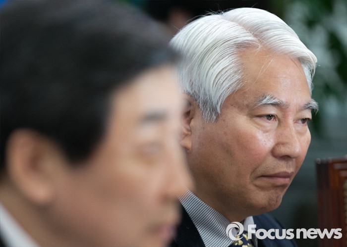 (서울=포커스뉴스) 공천심사 배제 통보를 받은 백군기 더불어민주당 원내부대표가 8일 오전 서울 여의도 국회에서 열린 원내대책회의에 참석해 이종걸 원내대표의 발언을 듣고 있다.