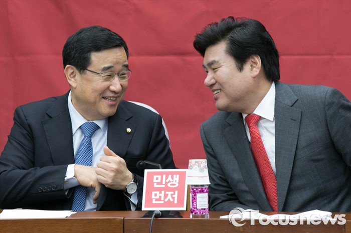 이어 김 의장은 "야당의 반대로 사이버테러방지법이 정보위에 묶여 있으니 한심한 노릇"이라며 "야당은 국정원을 의심해 제대로 뛰지 못하게 발목잡지 말고 사이버테러방지법을 즉각 처리해 북한의 사이버테러에 대한 대책을 세워야 한다"고 촉구했다.원유철(오른쪽) 새누리당 원내대표와 김정훈 정책위의장이 8일 오전 서울 여의도 국회에서 열린 원내대책회의에 참석해 대화하고 있다. 2016.03.08 박철중 기자