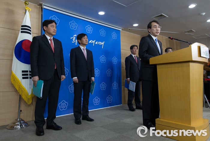 (서울=포커스뉴스) 8일 오후 서울 종로구 정부서울청사에서 이석준(오른쪽) 국무조정실장이 정부 독자 대북 제재안을 발표하고 있다.