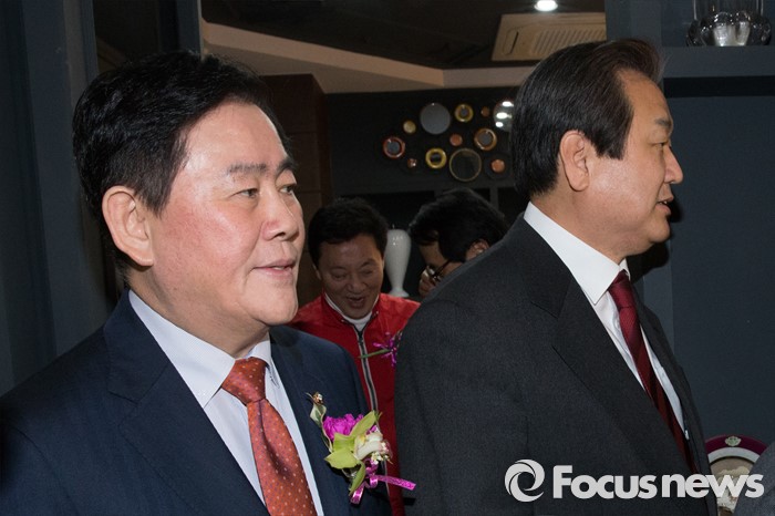 (서울=포커스뉴스) 김무성 새누리당 대표와 최경환 새누리당 의원이 8일 오후 서울 마포구 신촌 케이터틀 컨벤션홀에서 열린 새누리당 서울시당 서대문갑 당원교육 및 전진대회에 참석하기 위해 행사장으로 향하고 있다.