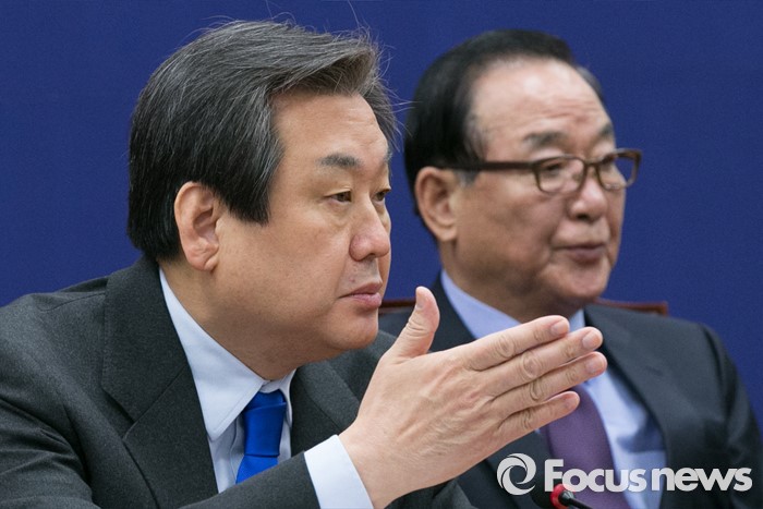 (서울=포커스뉴스) 김무성(왼쪽) 새누리당 대표가 9일 오전 서울 여의도 국회에서 열린 최고중진연석회의에 참석해, 회의를 주재하고 있다.