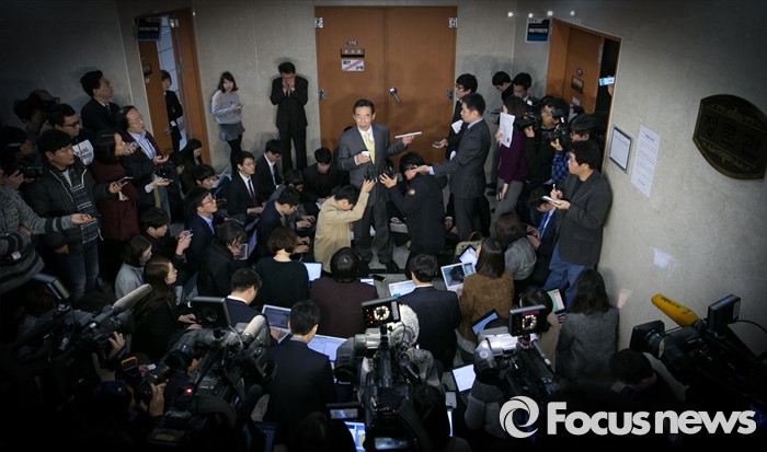 (서울=포커스뉴스) 홍창선 더불어민주당 공천관리위원장이 9일 오전 서울 여의도 국회 정론관에서 20대 총선 1차 경선지역과 관련 브리핑을 마친 뒤 취재진 질문에 답하고 있다. 홍 위원장은 이날 브리핑 중 취재관행을 바꾸기 위한 언론인과 대화를 하던 중 일부 항의를 받았다.