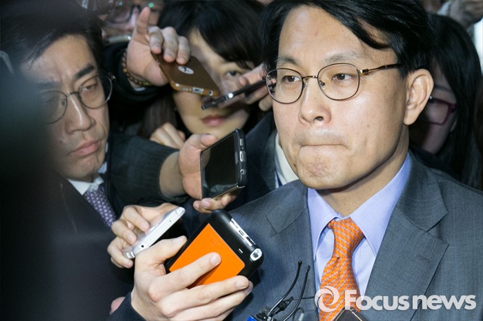 (서울=포커스뉴스) 김무성 새누리당 대표를 향한 욕설로 당내 파문을 일으킨 윤상현 의원이 9일 오전 서울 여의도 새누리당 대표최고위원실 앞 로비에서 기자들의 질문에 답변하고 있다. 전날 윤 의원은 전화를 통해 김 대표를 거론하며 욕설한 사실이 언론에 공개됐으며, 이날 김 대표에게 면담을 요청했으나 거절됐다.