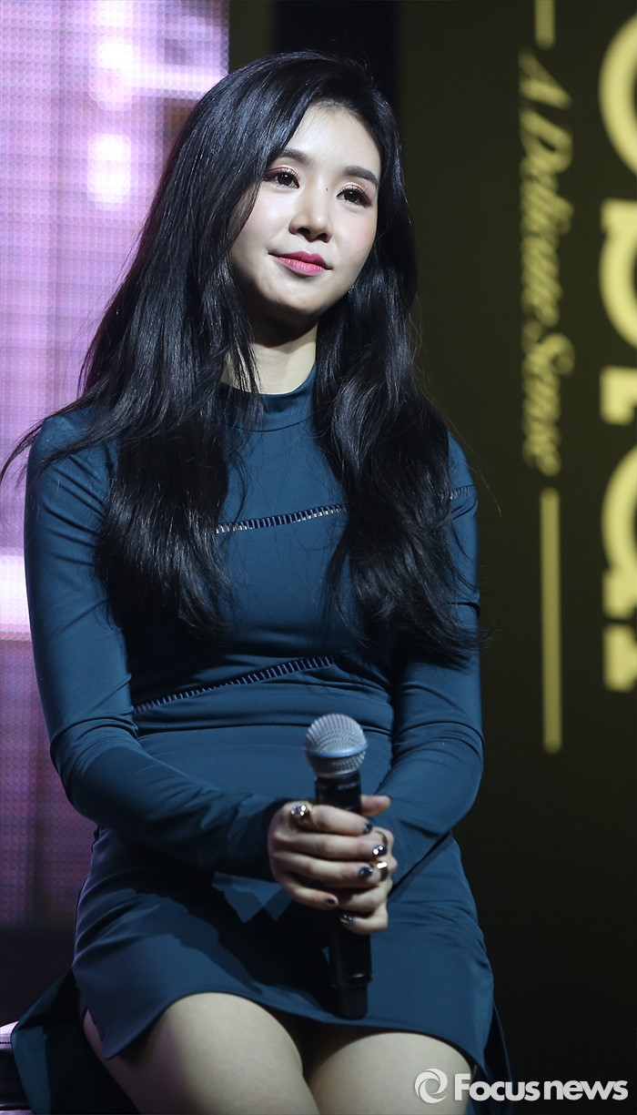(서울=포커스뉴스) 9일 오전 서울 마포구 예스24 무브홀에서 열린 걸그룹 피에스타의 미니앨범 'A Delicate Sense' 발표 쇼케이스에 참석한 멤버 차오루가 취재진에게 질문을 받고 있다.