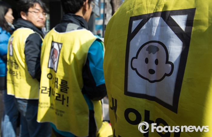(서울=포커스뉴스) 9일 오전 서울 종로구 SK서린빌딩 앞에서 환경보건시민센터를 비롯한 가습기살균제피해자와가족모임 회원들이 '가습기살균제 피해 관련 고발 기자회견'을 하고 있다.