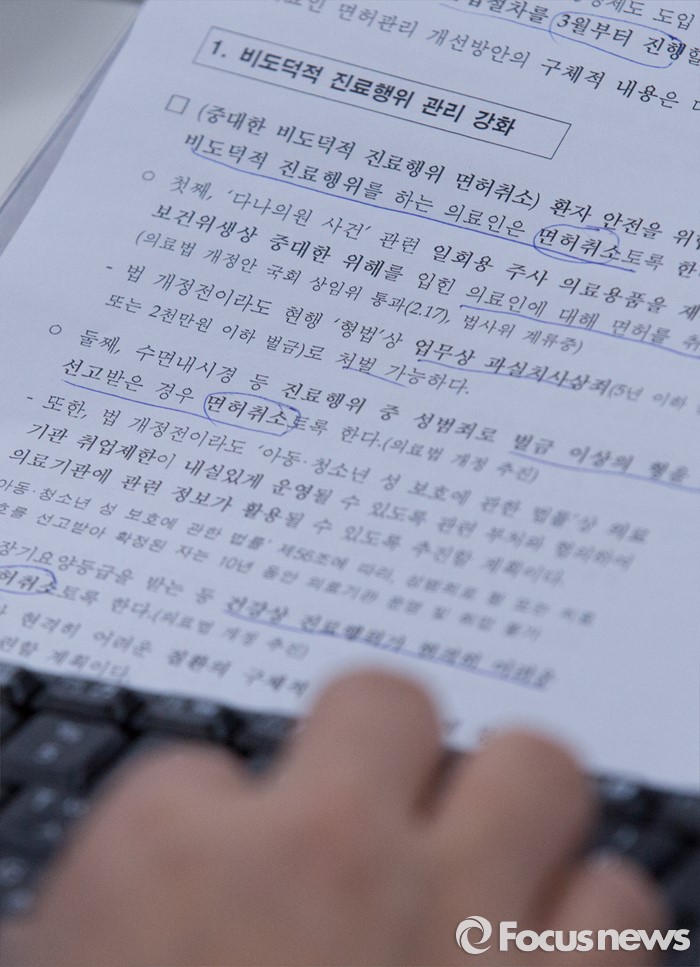 | △ 수면 내시경 성추행시, 벌금 이상 선고시 면허 취소한다 |