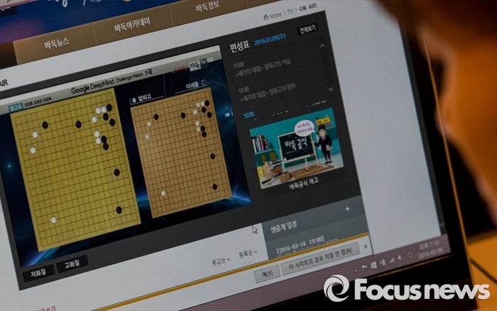 (서울=포커스뉴스) 9일 오후 서울 종로구 포시즌스 호텔에서 열린 이세돌 9단과 알파고의 '구글 딥마인드 챌린지 매치'에서 한 관계자가 노트북으로 대국을 관전하고 있다.