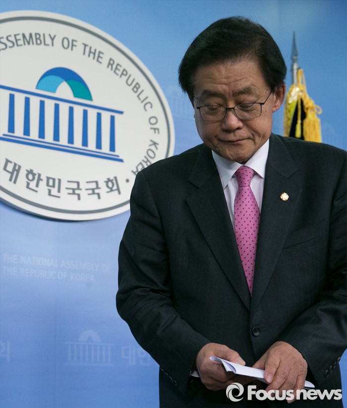 (서울=포커스뉴스) 새누리당 현역 의원 중 공천배제 통보를 받은 김태환 의원이 9일 오후 서울 여의도 국회 정론관에서 탈당 및 20대 총선 무소속 출마 기자회견을 마친 뒤 퇴장하고 있다.