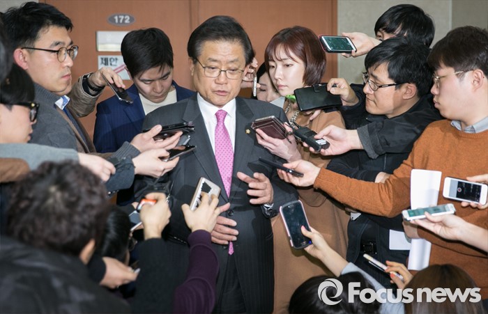 (서울=포커스뉴스) 새누리당 현역 의원 중 공천배제 통보를 받은 김태환 의원이 9일 오후 서울 여의도 국회 정론관에서 탈당 및 20대 총선 무소속 출마 기자회견을 마친 뒤 취재진 질문에 답하고 있다.