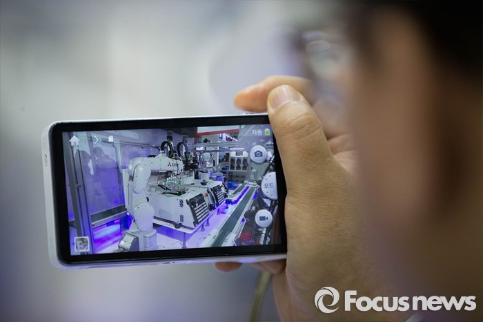 (서울=포커스 뉴스) 9일 오후 서울 강남구 코엑스에서 열린 '2016 오토메이션 월드 국제스마트공장, 자동화 전시회'에서 한 관람객이 자동화 제품생산 과정을 휴대폰에 담고 있다.