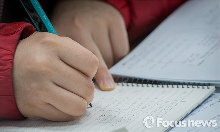 (서울=포커스뉴스) 10일 오전 서울 서대문구 명지고등학교에서 1학년 학생이 2016학년도 첫 전국연합학력평가를 앞두고 마지막 공부를 하고 있다.