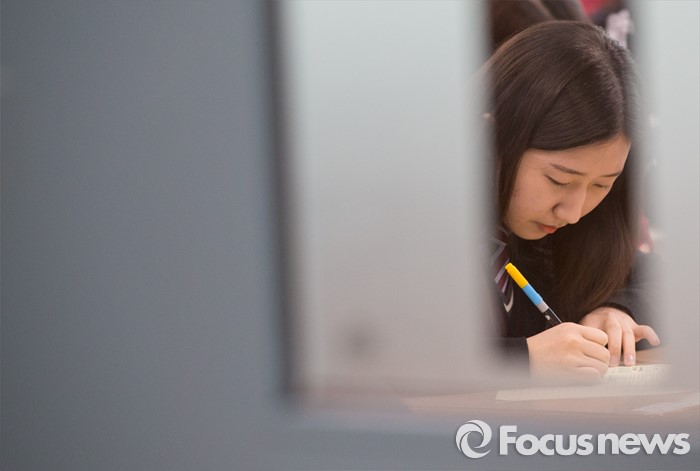 (서울=포커스뉴스) 10일 오전 서울 서대문구 명지고등학교에서 1학년 학생들이 2016학년도 첫 전국연합학력평가 치고 있다.