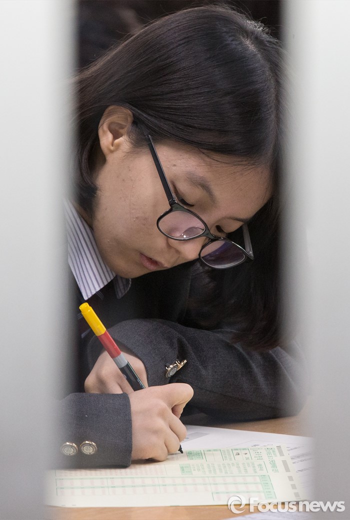 (서울=포커스뉴스) 10일 오전 서울 서대문구 명지고등학교에서 1학년 학생들이 2016학년도 첫 전국연합학력평가를 치고 있다.