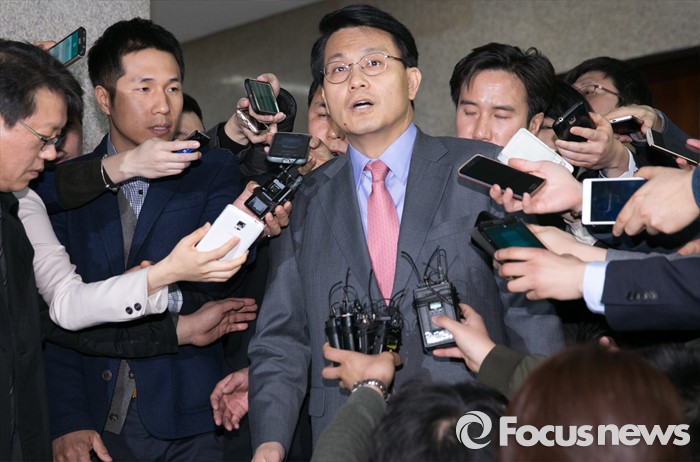 (서울=포커스뉴스) '김무성 욕설 녹취록'으로 논란을 일으킨 윤상현 새누리당 의원이 10일 오전 서울 여의도 국회에서 비공개 최고위원회의에 참석한 뒤 취재진 질문에 답하고 있다. 전날 김무성 대표와의 면담이 불발된 윤 의원은 이날 오전 김 대표의 자택을 방문해 사과했다고 전했다.