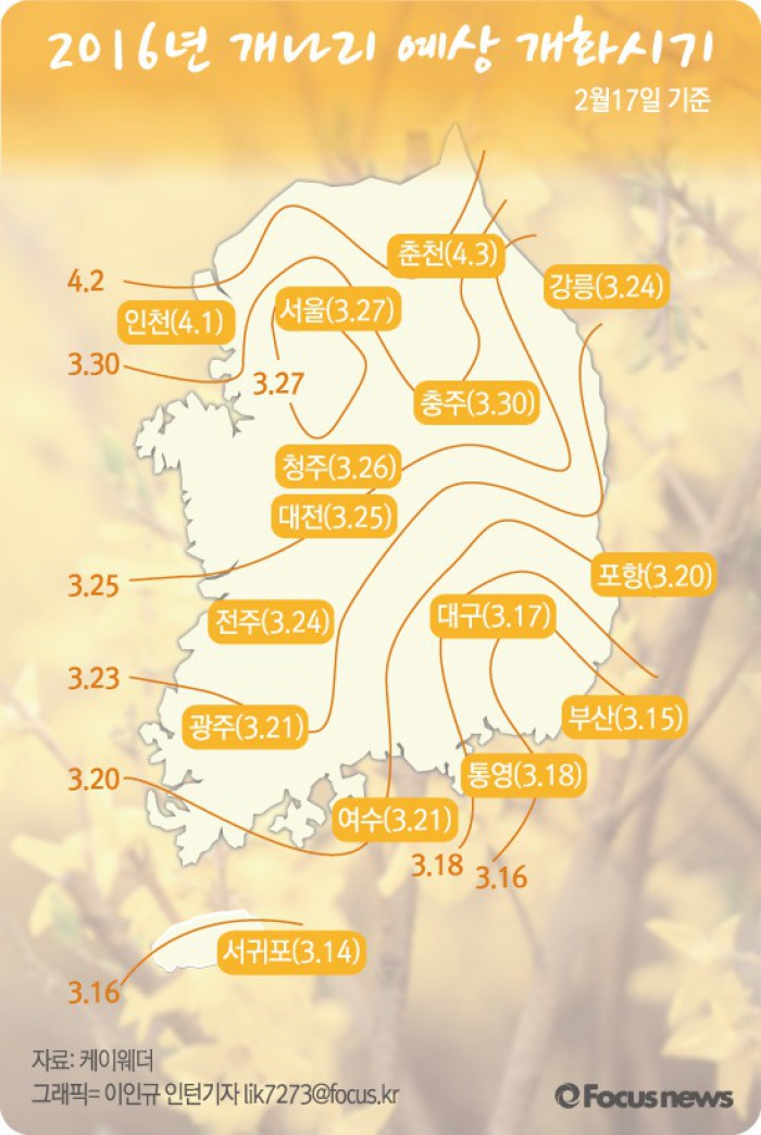 | △ [그래픽] 개나리 예상 개화시기 |