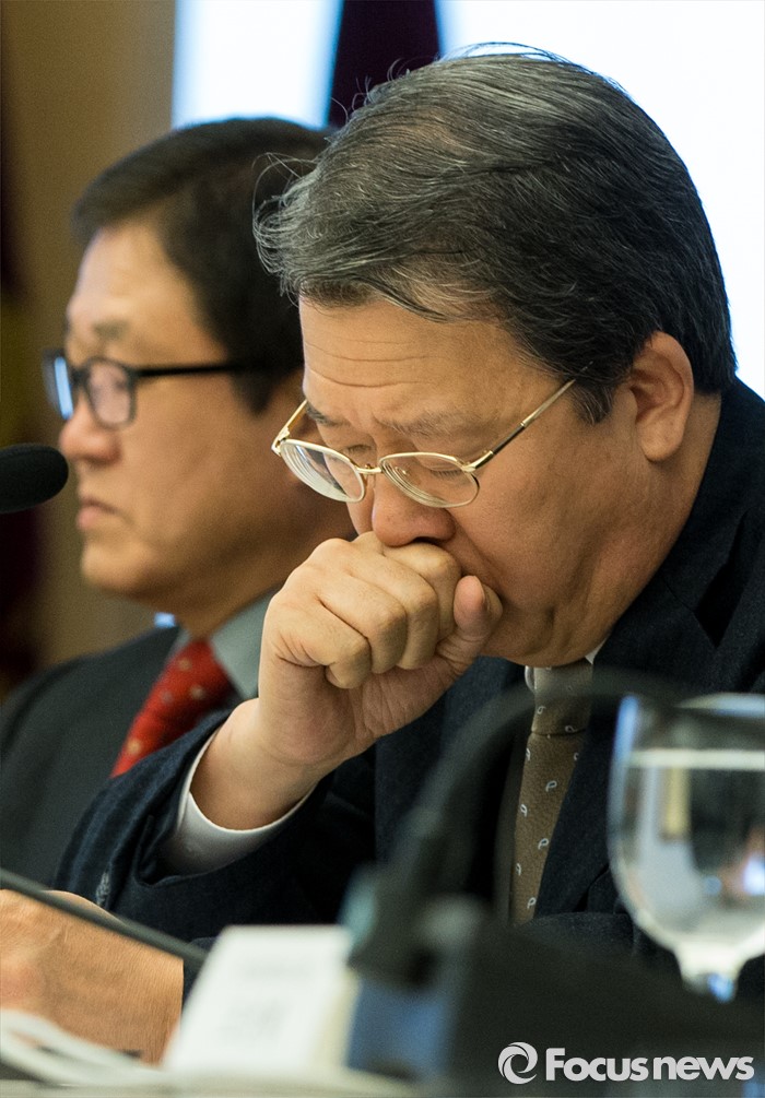 (서울=포커스뉴스) 10일 오전 서울 중구 대한상공회의소에서 열린 국세청장 초청 전국상의 회장단 정책간담회에 참석한 임환수 국세청장이 기침을 하고 있다.