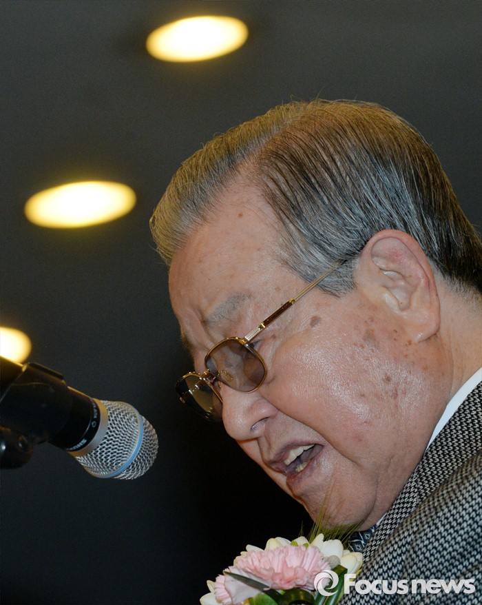 (서울=포커스뉴스) 김종필 전 국무총리가 10일 오후 서울 종로구 세종문화회관 세종홀에서 열린 자신의 '김종필 증언록' 출판기념회에 참석해 인사말을 하고 있다.