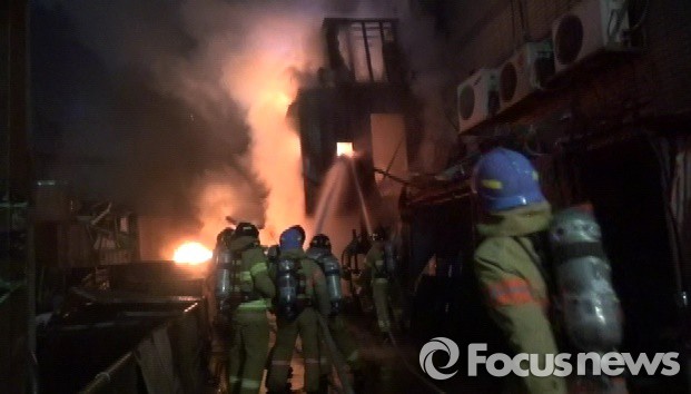 (서울=포커스뉴스) 10일 오후 10시31분쯤 서울 용산구 갈월동의 한 고물상 컨테이너 사무실에서 원인을 알 수 없는 불이 났다.