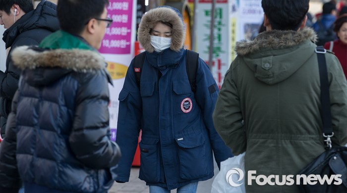 (서울=포커스뉴스) 사흘째 꽃샘추위가 이어지는 11일 오전 서울 2호선 구로디지털단지역 인근에서 시민들이 출근길을 재촉하고 있다.