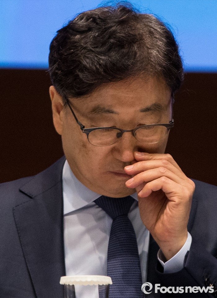 (서울=포커스뉴스) 11일 오전 서울 서초구 삼성전자 본사 다목적홀에서 열린 47기 정기주주총회에 참석한 윤부근 대표이사 사장이 얼굴을 만지고 있다.